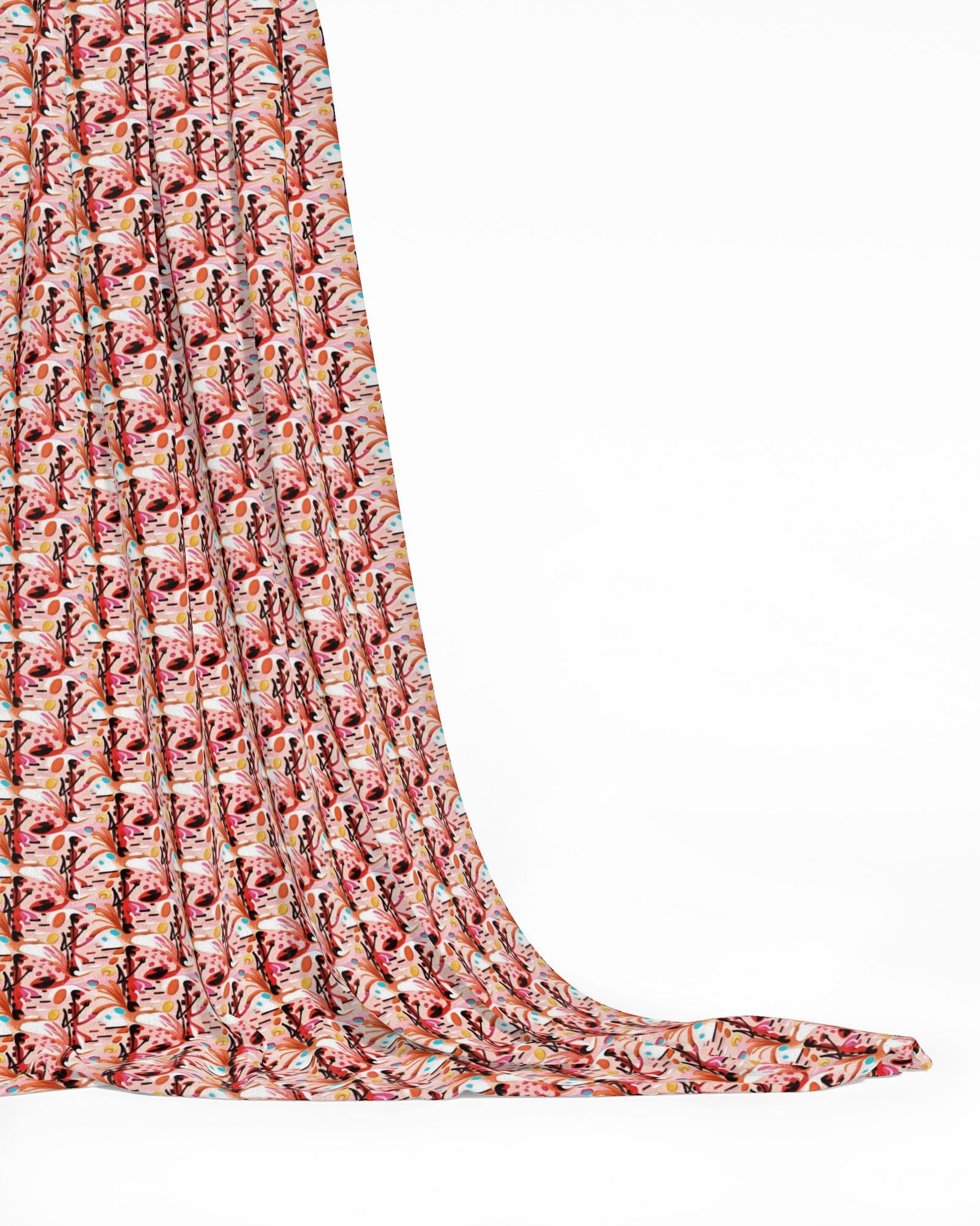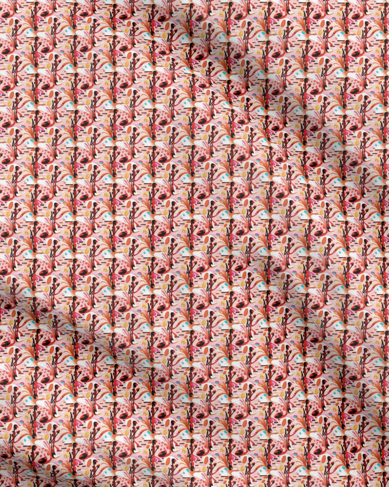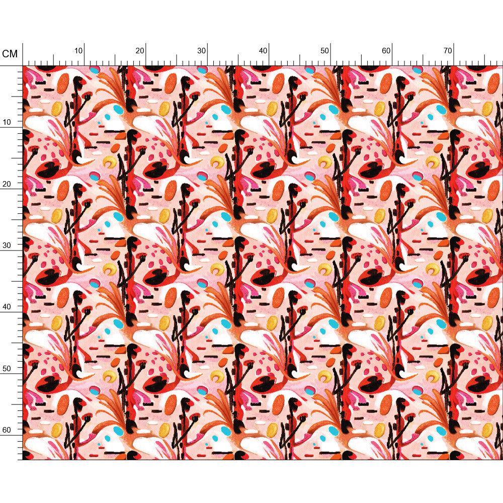 This seamless abstract acrylic pattern features bold, hand-painted brushstrokes in vibrant shades of red, pink, orange, and coral, accented with touches of black, turquoise, and golden yellow. Organic shapes flow across the surface, evoking modern floral and botanical motifs with an artistic, painterly feel.Perfect for fabric printing, this lively design is ideal for creating fashion apparel, dresses, blouses, scarves, activewear, and accessories, as well as home décor textiles such as cushions, curtains, and table linens.